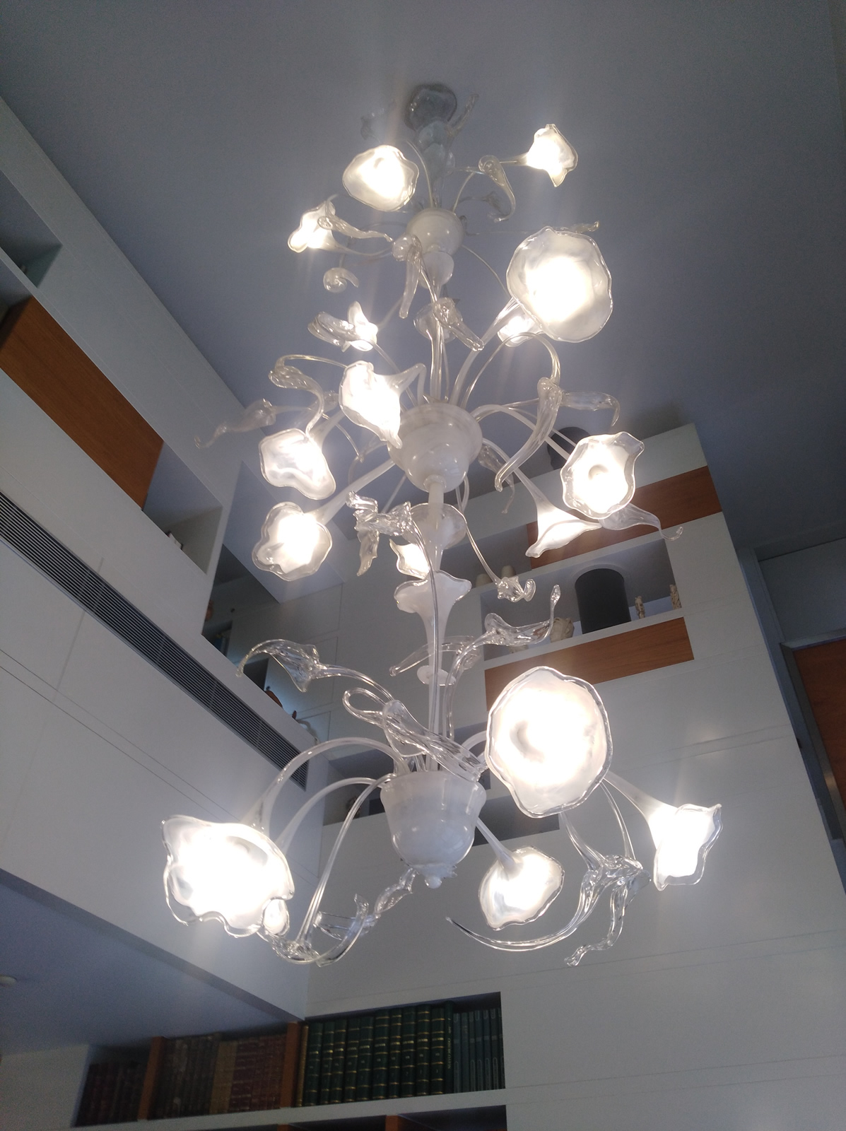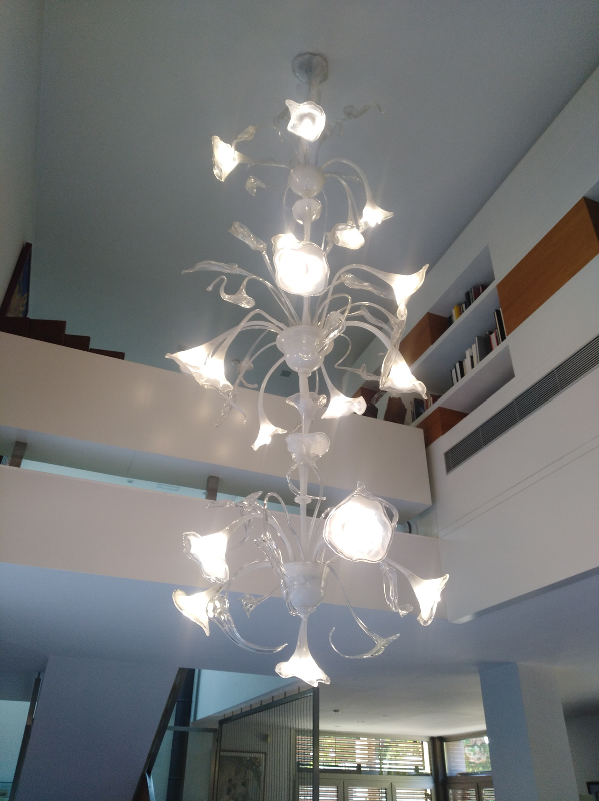 Lámpara de techo grande con 16 tulipas blancas. 2 metro sde alta