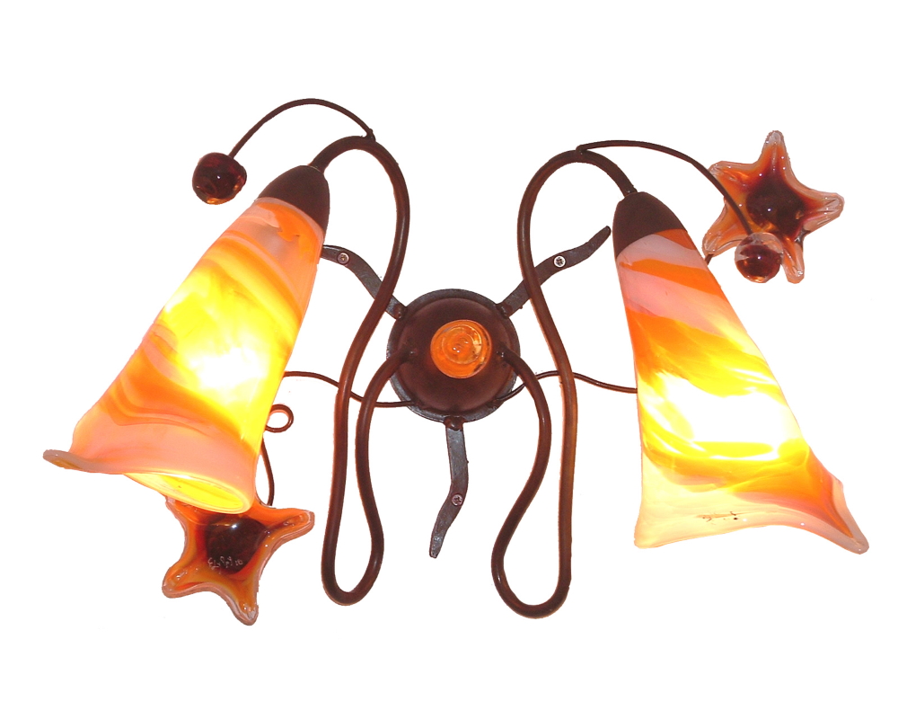 Lámpara de techo. Tulipas de hierro y vidrio soplado