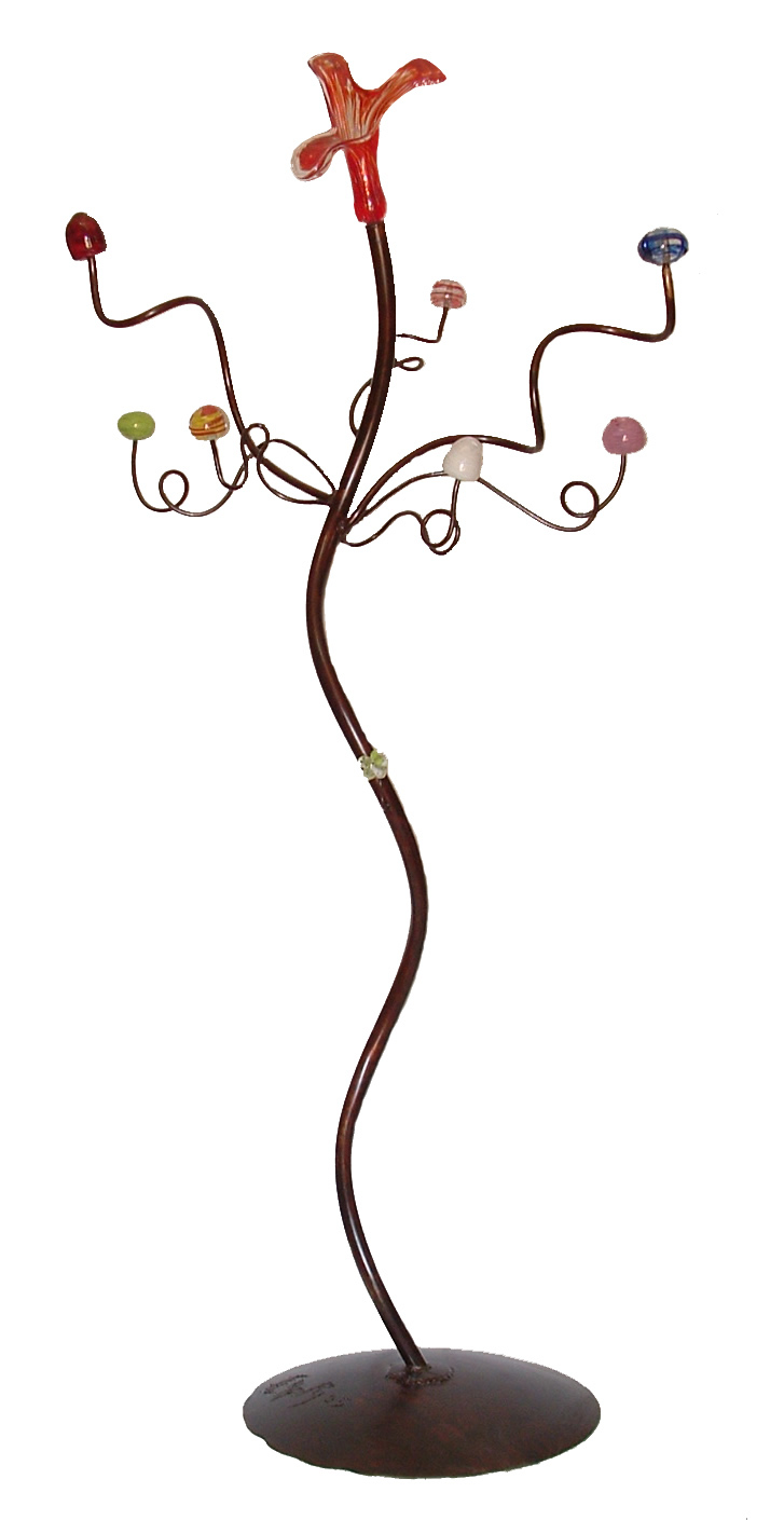 Perchero de pié. Hierro y vidrio soplado.